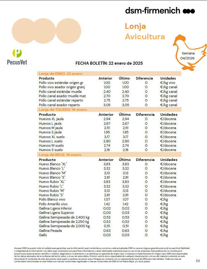 26 Ene Categorías: lonja Etiquetas: Avicultura lonja avicultura Jordi Vazquez administrator Puesto AnteriorSiguiente post Artículos Relacionados 09 Mar Boletín Rumiantes. Semana 10/2026 Lee mas 0 09 Mar Boletín Porcino Ibérico. Semana 10/2026 Lee mas 0 09 Mar Boletín Porcino. Semana 10/2026 Lee mas 0 09 Mar Boletín Materias Primas. Semana 10/2026 Lee mas 0 09 Mar Boletín Avicultura. Semana 10/2026 Lee mas 0 02 Mar Boletín Rumiantes. Semana 09/2026 Lee mas 0 02 Mar Boletín Porcino Ibérico. Semana 09/2026 Lee mas 0 02 Mar Boletín Porcino. Semana 09/2026 Lee mas 0 02 Mar Boletín Materias Primas. Semana 09/2026 Lee mas 0 02 Mar Boletín Avicultura. Semana 09/2026 Lee mas 0