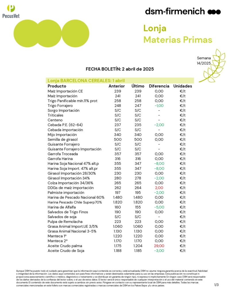 04 Abr Categorías: lonja Etiquetas: boletín materias primas lonja materias primas materias primas Jordi Vazquez administrator Puesto AnteriorSiguiente post Artículos Relacionados 09 Mar Boletín Rumiantes. Semana 10/2026 Lee mas 0 09 Mar Boletín Porcino Ibérico. Semana 10/2026 Lee mas 0 09 Mar Boletín Porcino. Semana 10/2026 Lee mas 0 09 Mar Boletín Materias Primas. Semana 10/2026 Lee mas 0 09 Mar Boletín Avicultura. Semana 10/2026 Lee mas 0 02 Mar Boletín Rumiantes. Semana 09/2026 Lee mas 0 02 Mar Boletín Porcino Ibérico. Semana 09/2026 Lee mas 0 02 Mar Boletín Porcino. Semana 09/2026 Lee mas 0 02 Mar Boletín Materias Primas. Semana 09/2026 Lee mas 0 02 Mar Boletín Avicultura. Semana 09/2026 Lee mas 0