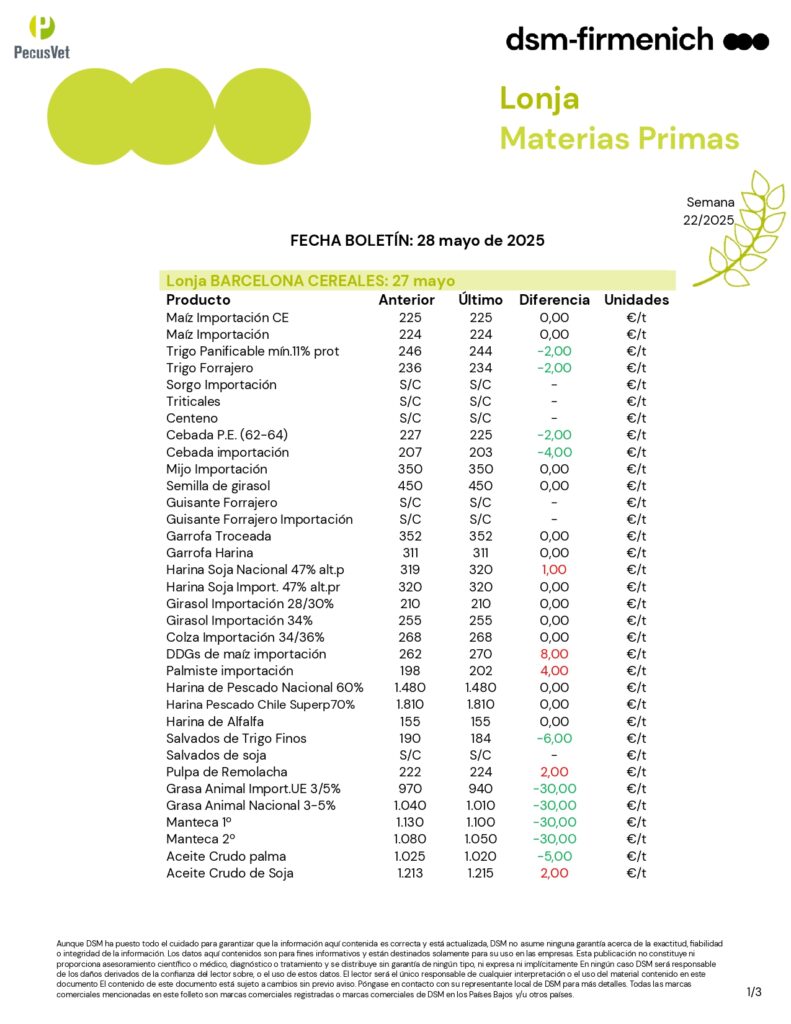 30 May Categorías: lonja Etiquetas: boletín materias primas lonja materias primas materias primas Jordi Vazquez administrator Puesto AnteriorSiguiente post Artículos Relacionados 09 Mar Boletín Rumiantes. Semana 10/2026 Lee mas 0 09 Mar Boletín Porcino Ibérico. Semana 10/2026 Lee mas 0 09 Mar Boletín Porcino. Semana 10/2026 Lee mas 0 09 Mar Boletín Materias Primas. Semana 10/2026 Lee mas 0 09 Mar Boletín Avicultura. Semana 10/2026 Lee mas 0 02 Mar Boletín Rumiantes. Semana 09/2026 Lee mas 0 02 Mar Boletín Porcino Ibérico. Semana 09/2026 Lee mas 0 02 Mar Boletín Porcino. Semana 09/2026 Lee mas 0 02 Mar Boletín Materias Primas. Semana 09/2026 Lee mas 0 02 Mar Boletín Avicultura. Semana 09/2026 Lee mas 0