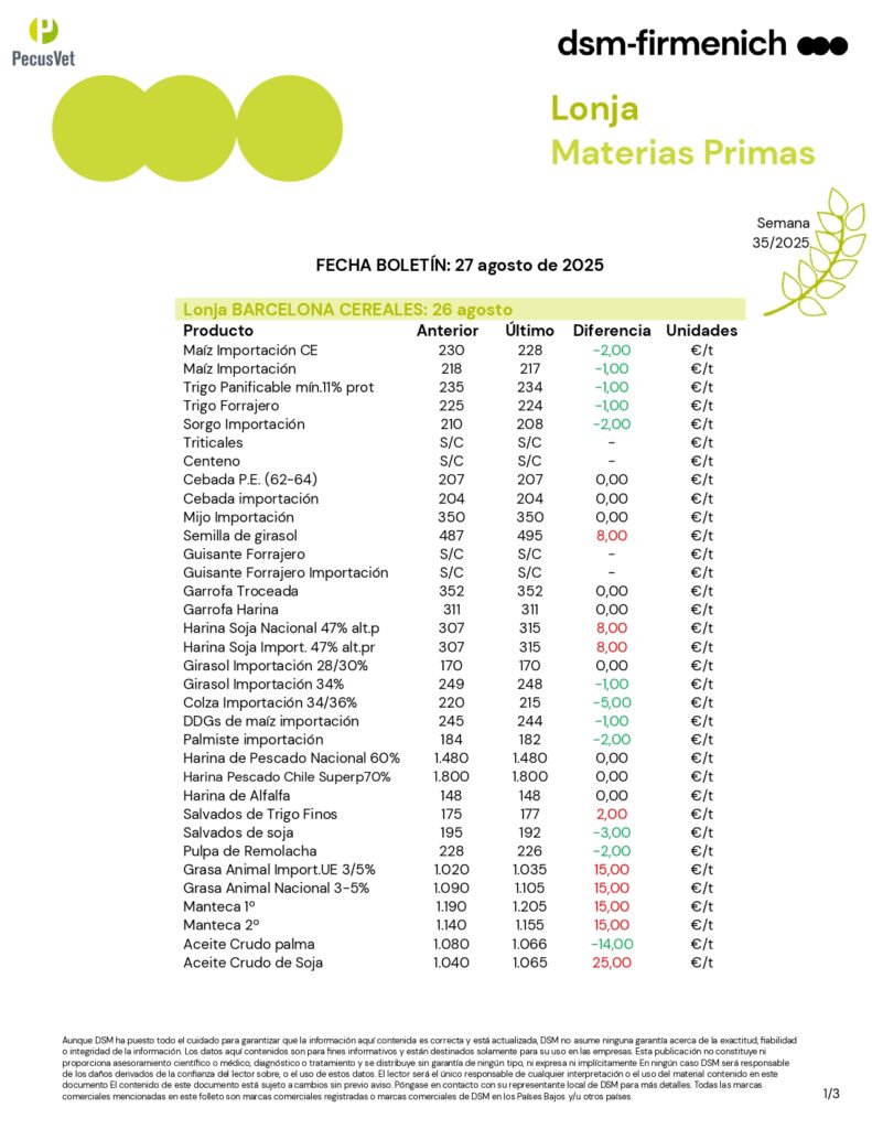 29 Ago Categorías: lonja Etiquetas: boletín materias primas lonja materias primas materias primas Jordi Vazquez administrator Puesto AnteriorSiguiente post Artículos Relacionados 09 Mar Boletín Rumiantes. Semana 10/2026 Lee mas 0 09 Mar Boletín Porcino Ibérico. Semana 10/2026 Lee mas 0 09 Mar Boletín Porcino. Semana 10/2026 Lee mas 0 09 Mar Boletín Materias Primas. Semana 10/2026 Lee mas 0 09 Mar Boletín Avicultura. Semana 10/2026 Lee mas 0 02 Mar Boletín Rumiantes. Semana 09/2026 Lee mas 0 02 Mar Boletín Porcino Ibérico. Semana 09/2026 Lee mas 0 02 Mar Boletín Porcino. Semana 09/2026 Lee mas 0 02 Mar Boletín Materias Primas. Semana 09/2026 Lee mas 0 02 Mar Boletín Avicultura. Semana 09/2026 Lee mas 0